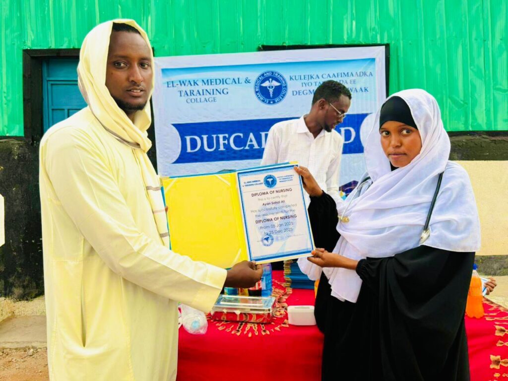 - Maamulka Kuleejka Elwak Medical, oo soo bandhigay dadaalkii adkaa ee loo soo maray tababarka ardaydan.