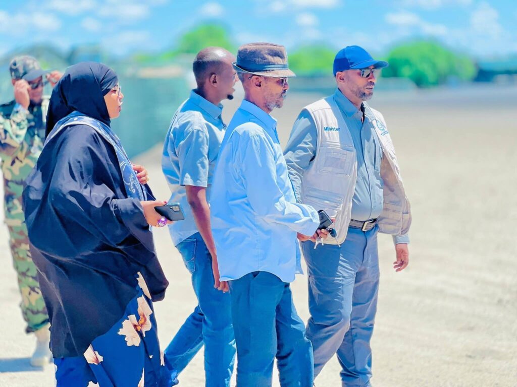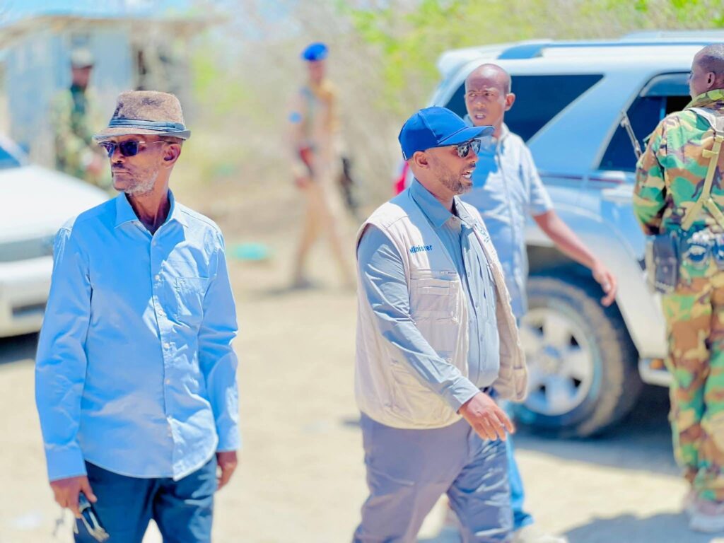 AFMADOW (Jubbaland): Wafdi ballaaran oo uu hoggaaminayo Wasiirka Wasaaradda Gargaarka iyo Maareynta Masiibooyinka Dowladda Jubbaland, Mudane Cabdiraxmaan Maxamed Dhiiriq, uuna wehliyo Wasiirka Wasaaradda Tamarta iyo Kheyraadka Biyaha, Mudane Axmed Xuseen Baraki (Zubeer), ayaa maanta safar shaqo ku soo gaaray degmada Afmadow ee gobolka Hoose.